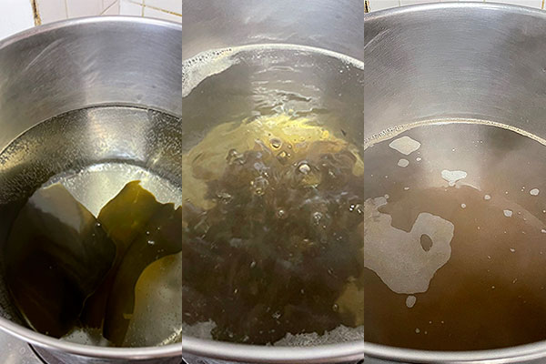 赤だしは、こんぶ・かつお節からしっかり出汁をとる。