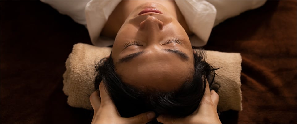 ストレスや疲労、オーバーワークにより、頭の筋肉が硬直すると脳も疲労してしまいます。頭には自律神経・安眠・精神安定に関係するポイントが集中していますので、ヘッドマッサージで頭をくまなく揉みほぐし、血液や神経、リンパ液の流れを促進することで、脳疲労が解消しやすくなります。またヘッドマッサージで顔や頭の筋肉・組織を刺激する事により、血流が活性化されます。その結果、髪の成長に必要な栄養分などがしっかりと行き渡り、美髪効果や育毛効果につながります。眼精疲労の軽減にも効果があります。